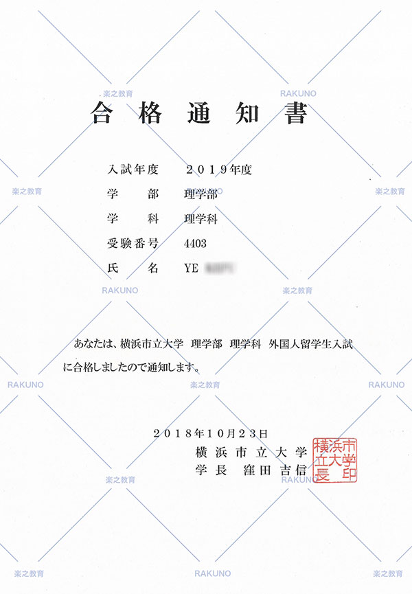 恭喜叶同学合格横滨市立大学理学部